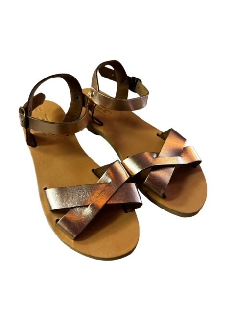 Handmade in Greece. Full-grain leather straps. Natural tan cowhide premium quality leather insole. Anti-slippery EVA sole. 0.27" heel.